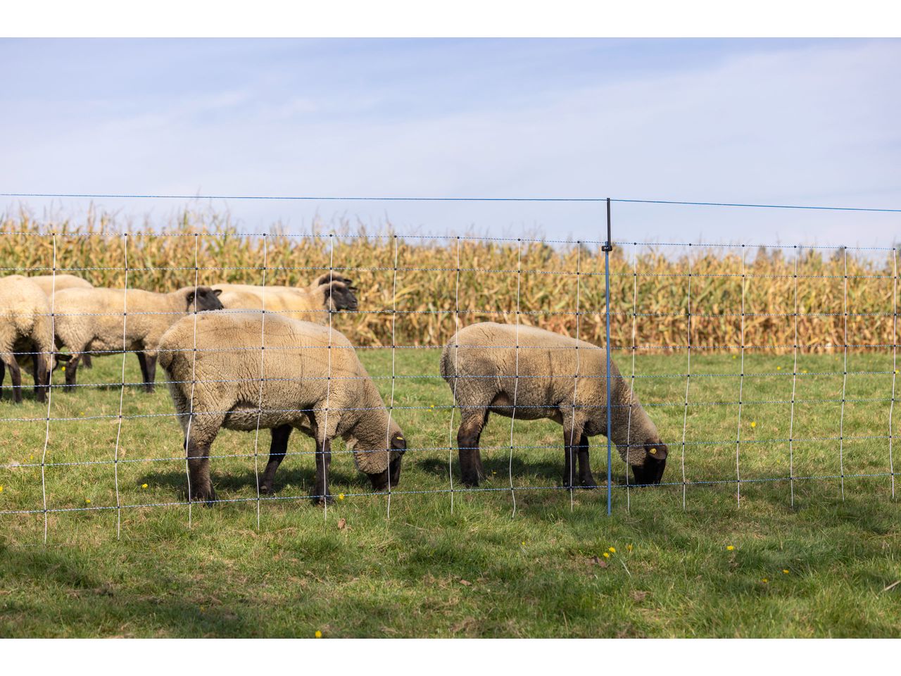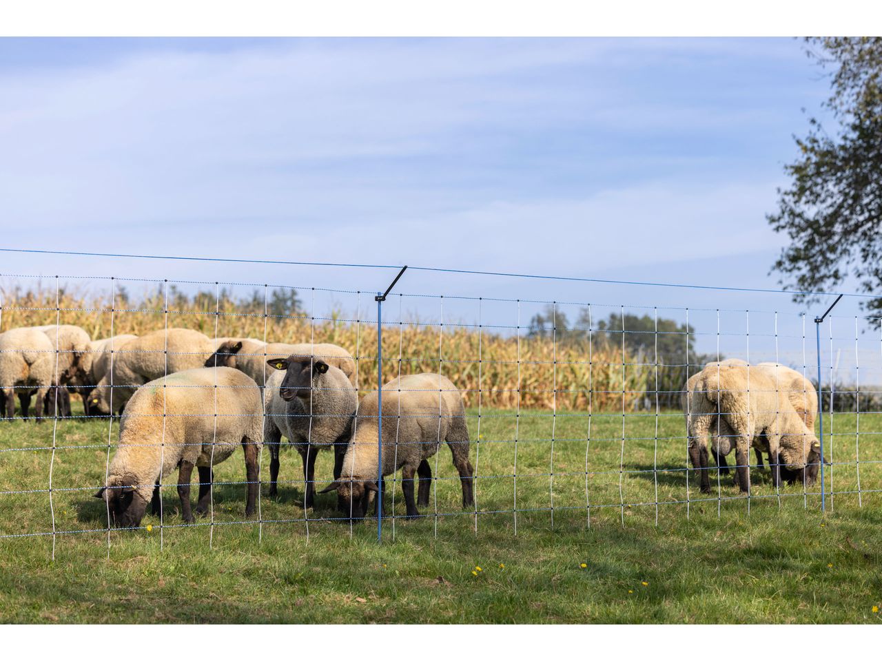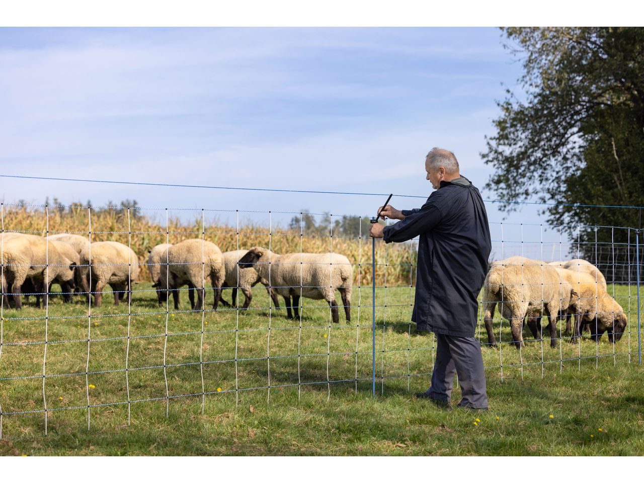 - in the case of horned sheep and goats, a distance strand can be drawn on the inside of the net to the electrified wolf defence fence