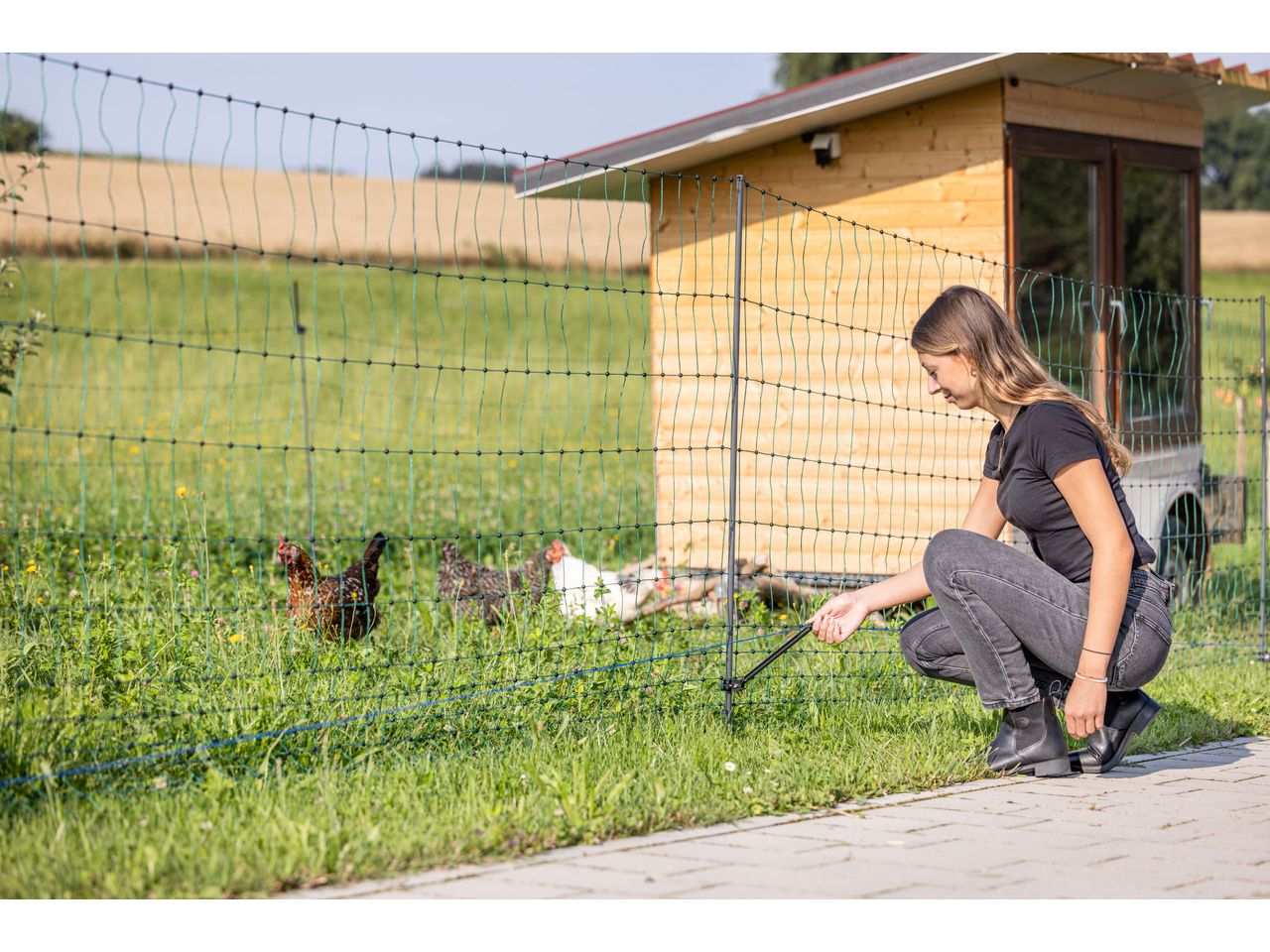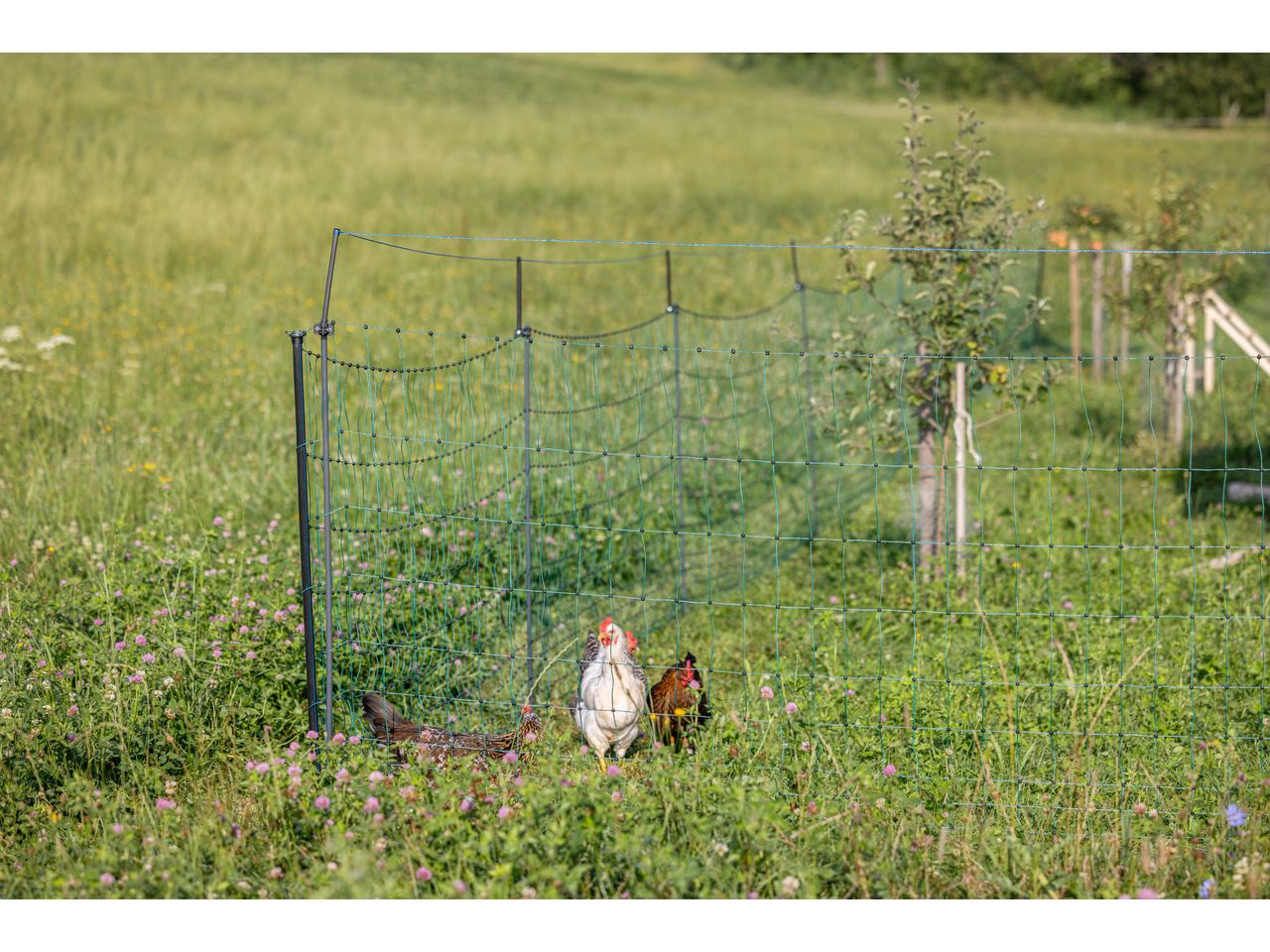 - mounted on posts in the poultry netting and equipped with an electrified wire, the WolfStop also keeps foxes away from the poultry run (mounting in position 1.A, ideally close to the ground)