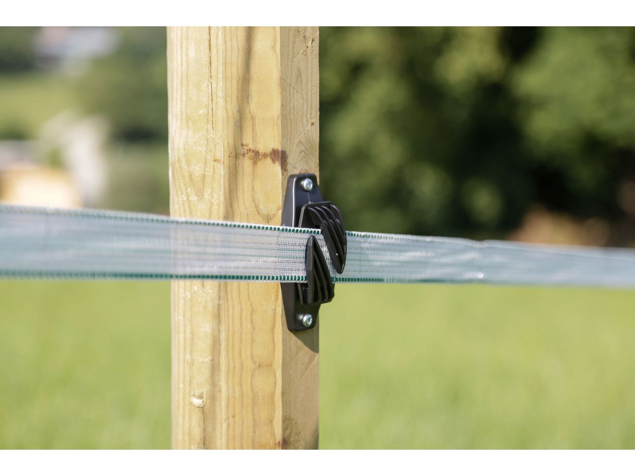 - tape passes through – thus easy straining of hot tape over longer runs of fence